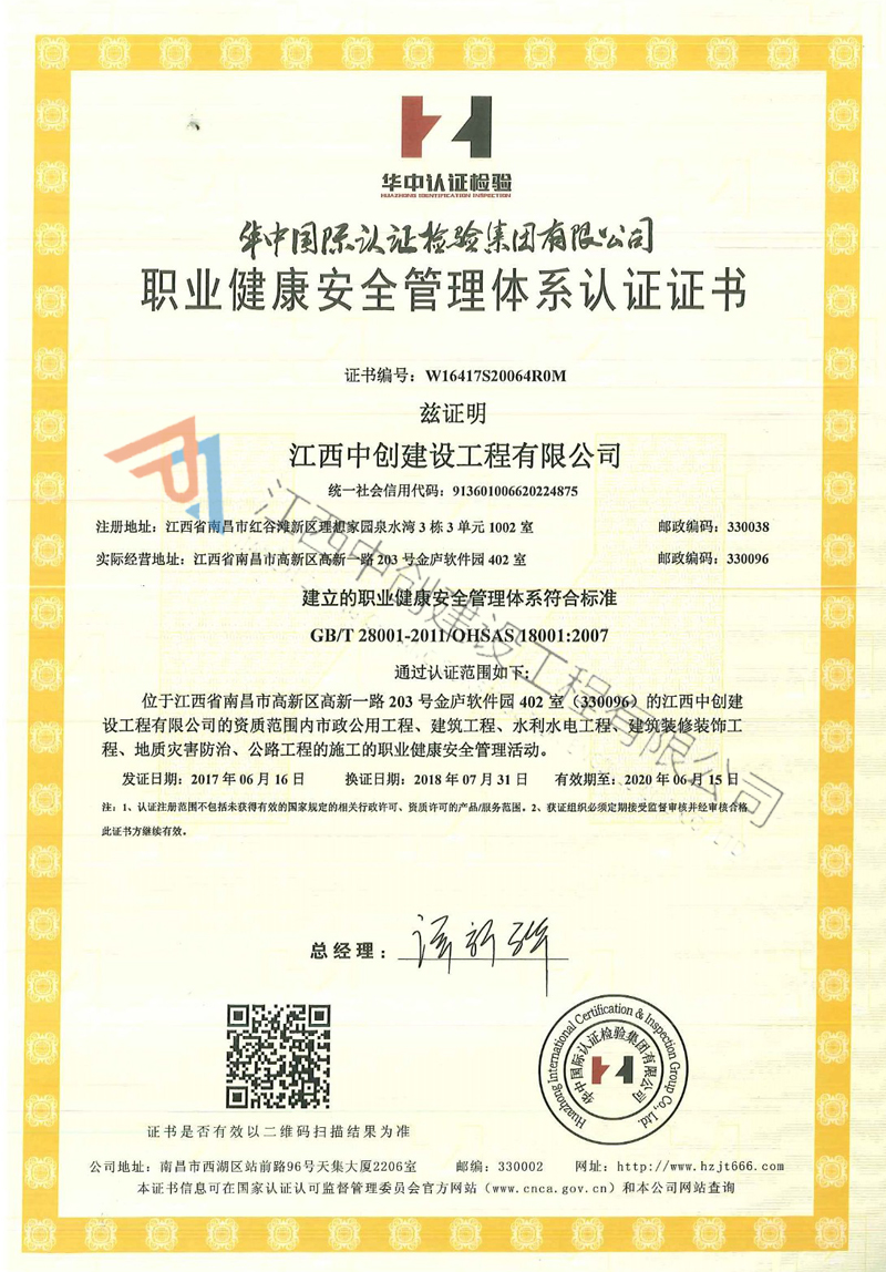 • 職業(yè)健康安全管理體系認證證書2018-08-17