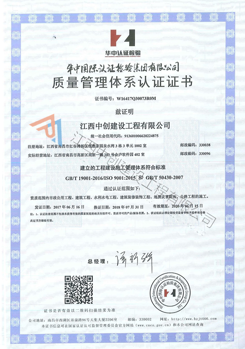 江西中創(chuàng)建設(shè)工程有限公司成立于2007年,是以建筑施工、建筑勞務(wù)和房地產(chǎn)開發(fā)為三大支柱,同時具建筑工程一級、市政工程一級、環(huán)保工程一級、地質(zhì)災(zāi)害治理甲級、裝飾裝修一級、建筑智能化一級以及水利水電、公路橋梁、機電設(shè)備安裝以及鋼結(jié)構(gòu)、特種專業(yè)加固、公路養(yǎng)護等一體...【查看詳情】